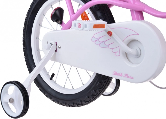 ROYALBABY Little Swan 14" je prikupno otroško kolo v rožnato-beli kombinaciji, zasnovano za prve vožnje z največjim poudarkom na varnosti, udobju in enostavnem učenju. Lahek jeklen okvir olajša vzpenjanje na kolo, visoke pnevmatike z nedrsečim profilom pa zagotavljajo dober oprijem s podlago.