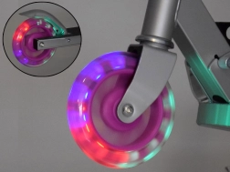 Ta otroški zložljiv skiro združuje lahkost, vzdržljivost in varnost. Kolesa se med vožnjo samodejno zasvetijo z magnetno energijo, zato baterije niso potrebne. Kovinska konstrukcija iz aluminija in jekla zagotavlja dolgo življenjsko dobo ter nizko težo za enostavno upravljanje.