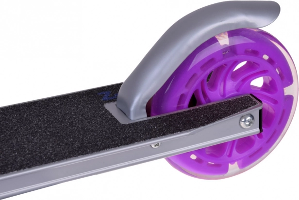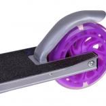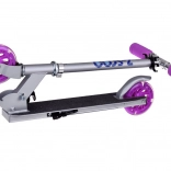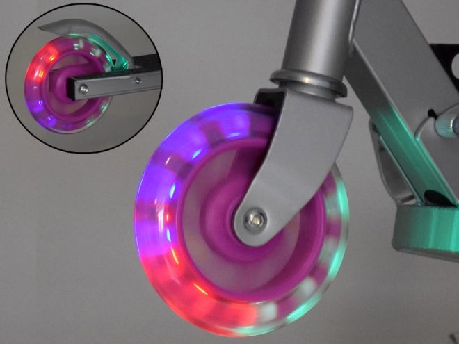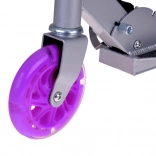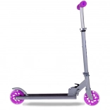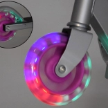 Lahek in trpežen zložljiv skiro za otroke z LED svetlečimi kolesi, nastavljivo višino krmila in nedrsečo desko. Preprosto se zloži, udobno prenaša in je zahvaljujoč nožni zavori na blatniku varen tudi pri hitrejši vožnji. Odličen za sprehode v park, po kolesarskih stezah in na počitnice.