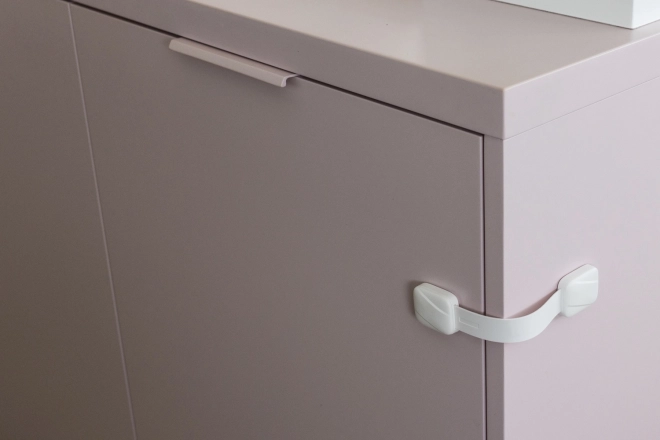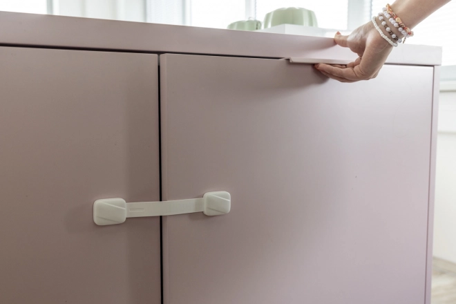 Nastavljiva ključavnica zagotavlja varovanje omar in predalov ter ščiti otroke pred nevarnimi predmeti.