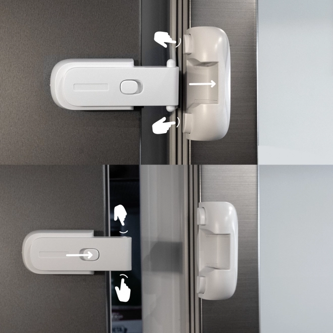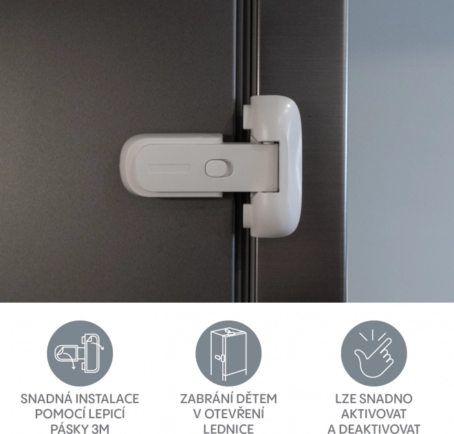 Vrata hladilnika, polna dobrot, še posebej privlačijo otroke. Zaklenite jih z zaklepom za hladilnik z varnostno zaporo, ki prepreči malim raziskovalcem, da bi jemali mamljivo hrano ali nevarno vsebino, kot so steklenice ali alkohol. Tako hladilniku ne grozi odtajevanje. Zaporo lahko deaktivirate, ko kuhate in potrebujete hiter dostop, in jo znova aktivirate, ko nimate 100-odstotnega nadzora nad otrokom. Zaklep preprosto pritrdite z lepljenjem, kar zagotavlja enostavno namestitev in večjo varnost za vašega otroka. Uporaben je le za enovratne hladilnike s širino površine na strani vrat več kot 2,5 cm.