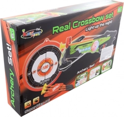 Po vstavitvi 2× AAA baterij samostrel sveti, zato lažje merite tudi v somraku. Odlično za trening natančnosti in zabavna tekmovanja.