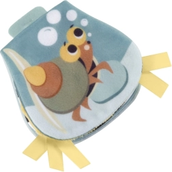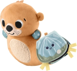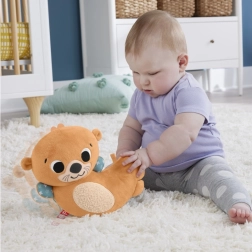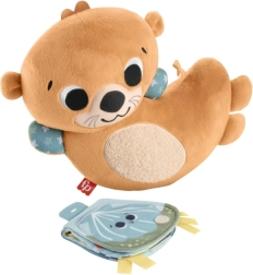 Mehka vidra spremlja dojenčka od prvih dni. Pri igri na trebuščku lahko ogledalce iz tekstilne knjižice postavite na hrbet vidre, da malček opazuje svoj odsev in vadi dvigovanje glavice. Ko začne sedeti, se vidra spremeni v zibajočega se prijatelja z nežnim zvonjenjem, ki motivira k potrkavanju in odkrivanju principa vzrok–posledica.