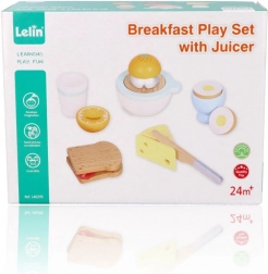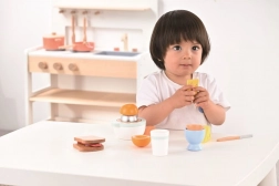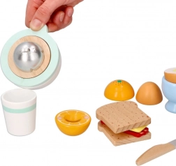 Ta skrbno izdelan lesen set za zajtrk je idealen za prve kuharske dogodivščine. Otroci si pripravijo svoj zajtrk – od rezanja peciva do stiskanja svežega soka. Realistični detajli in prijetne pastelne barve vabijo k igri in razvijajo domišljijo.