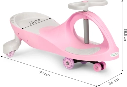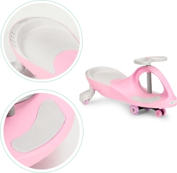 Poseben mehanizem omogoča speljevanje z izmeničnim zibanjem volana levo in desno. Otroci naravno vadijo ravnotežje in koordinacijo, medtem ko uživajo v gladki vožnji doma in zunaj.