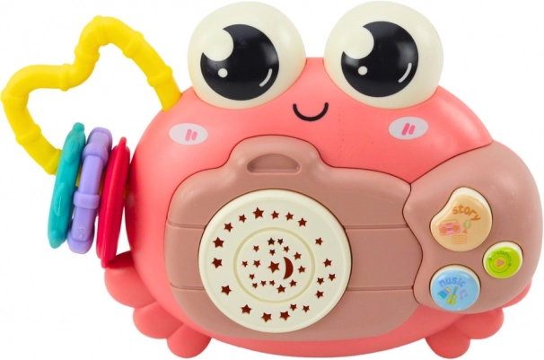 Interaktivni roza rak je idealen spremljevalec za vsakodnevne igre, ki ne le zabava, temveč tudi omogoča razvoj motoričnih spretnosti in zaznavanje zvokov pri otrocih. Rak je opremljen s projektorjem, ki z imitacijo nočnega neba ustvarja barvito vzdušje polno zvezd. Vgrajene ropotuljice ustvarjajo prijetne zvoke, s čimer stimulirajo otrokov sluh. Visokokakovostni, netoksični materiali zagotavljajo varnost, ergonomska oblika pa olajša držanje tudi za majhne otroške roke.