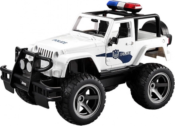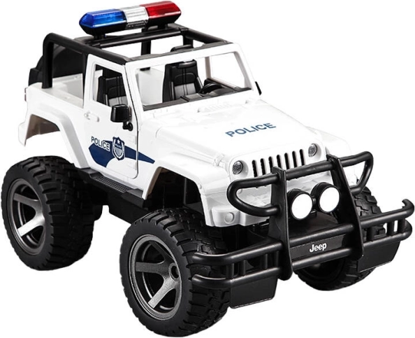 Daljinsko vodeni policijski avto Jeep od Double Eagle je dodelan do najmanjših podrobnosti, kar mu daje izjemno realističen videz. Opremeljen je z vzdržljivimi pnevmatikami, zmogljivim motorjem in sistemom vzmetenja, ki zagotavlja dinamično vožnjo in sposobnost premagovanja različnih terenov. Prav tako posnema realistične zvoke in luči, kar povečuje avtentičnost vsake policijske misije.