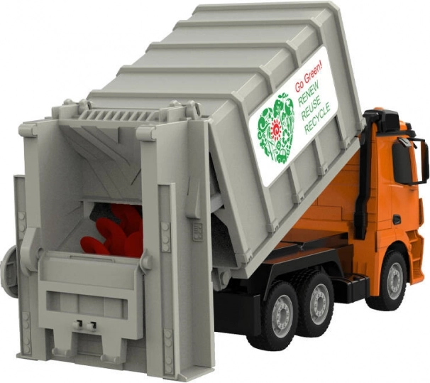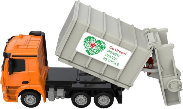Smetarski tovornjak je opremljen z naprednim radijskim upravljanjem 2,4GHz in močno, proti udarcem odporno konstrukcijo. Igrača je varna zahvaljujoč izdelavi iz nestrupenih in varnih materialov.