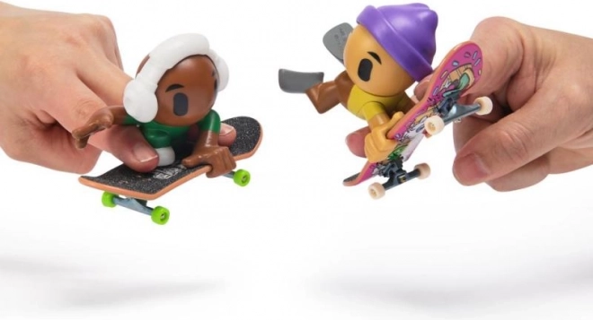 Vsako pakiranje vsebuje 2 realistična fingerboarda Tech Deck in 2 stajliš figurici Sk8 Crew. Prilepite nalepke, pripnite voznika in takoj začnite trenirati nove trike.