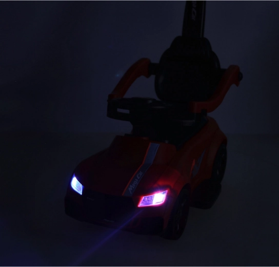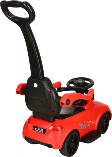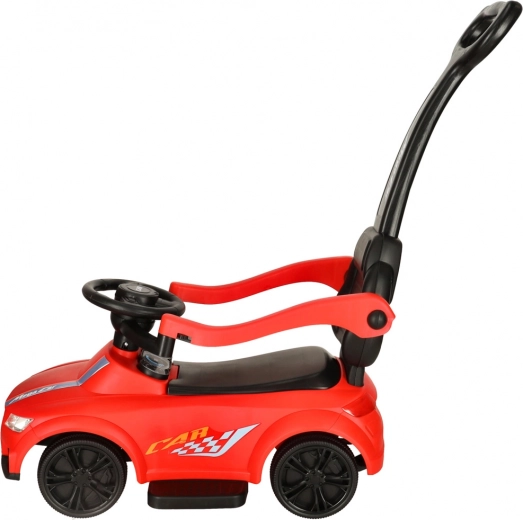 Pripravljeni, pozor, zdaj! Ta rdeči poganjalec za otroke od 12 mesecev je idealen za prve samostojne vožnje in sprehode s starši. Vgrajene luči in zvočni učinki (napajanje 3× AA) dodajo vožnji poseben čar, medtem ko udoben sedež z naslonom in stranskimi ograjami krepi občutek varnosti malih voznikov.