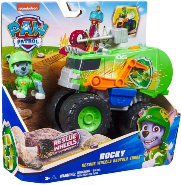 Ne bojte se podati z Paw Patrol na reševalne misije z velikimi kolesi, navdihnjene s serijo! Ta tovornjak ima ogromna kolesa in je oblikovan v istem slogu kot na televiziji. Otroci lahko posedejo Rockyja v voznikovo kabino in se odpravijo rešit situacijo.