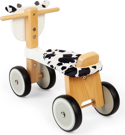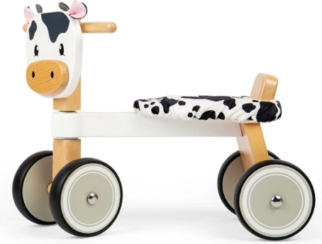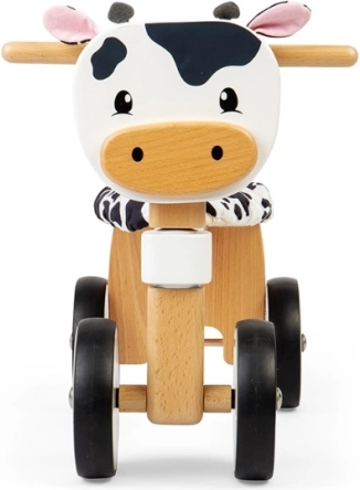 Lesena kravica ima zabavno obliko krave, ki podpira otroško domišljijo in ustvarjalnost.