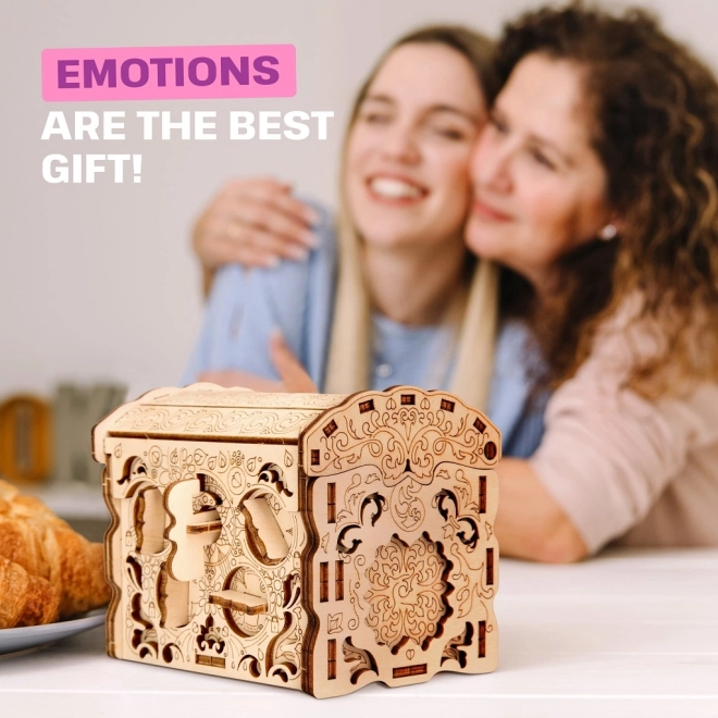Poslovite se od dolgočasnega darilnega papirja in podarite čustva – Skrivnostna Zakladnica nudi popolno doživetje zahvaljujoč dovršenemu mehanizmu. Najdite skrivnosti, skrite v tem edinstvenem skrivališču, in delite zabavo, ko tekmujete s prijatelji, kdo bo prvi razkril uganko. Boste dokazali svojo iznajdljivost in rešili vse izzive? Visokokakovostna škatla z natančnim laserskim rezanjem in ekskluzivnim dizajnom bo okras vsakega interierja, hkrati pa je izdelana iz 100 % naravnih, okolju prijaznih materialov.
