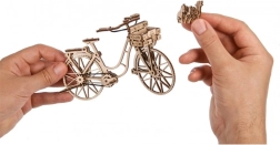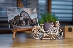 V paketu so tudi majhne figurice mačke, psa in cvetja, ki jih lahko postavite v košarico in modelu dodate osebno noto. Naravni les, precizna izdelava in stabilna konstrukcija iz končanega kolesa naredijo stilsko dekoracijo in izvirno darilo. Med sestavljanjem dodatno razvijate fino motoriko, potrpežljivost in prostorsko predstavo.