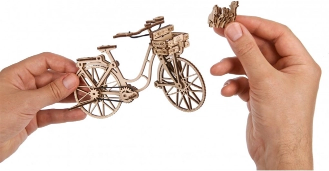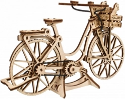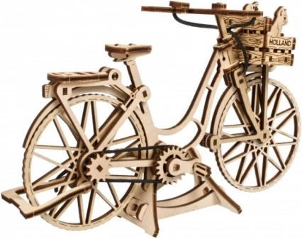Kolo Holland znamke Ugears zvesto ujame ikonično mestno kolo z ulic Amsterdama – z elegantnim okvirjem, sprednjo košarico in zadnjim nosilcem. Deli so z laserjem natančno predizrezani in se čisto prilegajo, zato model udobno sestavite brez lepila v približno 1,5 ure. Po koncu navduši z realističnimi funkcijami: vrtljiva krmila, gibljivi pedali z gumijasto verigo in vrteča se kolesa.