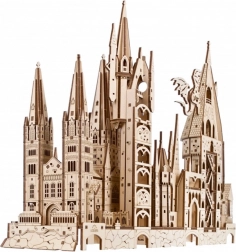 Razveselite se ikoničnega modela gradu Bradavičarka, ki zvesto zajema filmske podrobnosti – od veličastnih stolpov in stolpičev do dovršenih oken ter dramatičnih linij kamnitega zidu. Zadnja stran razkriva notranjost z Veliko dvorano, stolpičnim stopniščem in skrivnostnimi hodniki. Zahvaljujoč z laserjem izrezanim delom je sestavljanje natančno, zabavno in brez potrebe po lepilu.