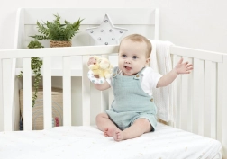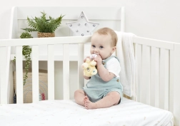 Pridušen zvok ropotuljice pritegne pozornost in hkrati ne obremenjuje občutljivega sluha dojenčka.