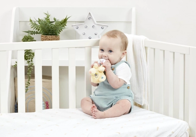 Odkrijte prvega prijatelja vašega dojenčka – mehko ropotuljico z glavico levčka SIMBE in obročkom za enostaven oprijem. Igrača nežno šelesti/ropota, pritegne pozornost ter naravno razvija vid, sluh in tip.
