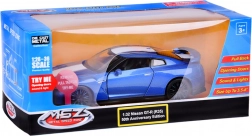Odkrijte ikonični NISSAN GT‑R v elegantni modri barvi kot kakovosten die‑cast model 1:32. Kovinska karoserija, gumijasta kolesa in plastično podvozje dajejo avtu realističen videz ter vzdržljivost pri igri. Zahvaljujoč mehanizmu Friction power je dovolj, da avtomobilček potegnete po gladki površini in spustite.