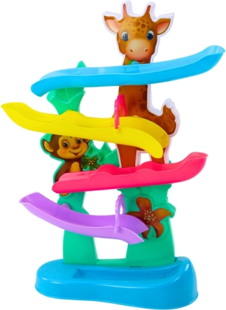 Odkrijte zabavno in varno kroglično stezo v obliki žirafe in opice, ki otroke navduši s svojo preprostostjo in interaktivnimi učinki. Po spustu kroglic se začne gladka vožnja po nivojih, ob prihodu v bazo pa se aktivirajo vesele melodije in zvoki živali. Igrača razvija fino motoriko, koordinacijo roka–oko in razlikovanje barv, izdelana pa je z velikim poudarkom na varnosti in stabilnosti.