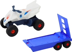 Moder avtomobil s prikolico za prevoz štirikolesnika prinaša avtentičen policijski videz in gladko vožnjo po različnih podlagah.