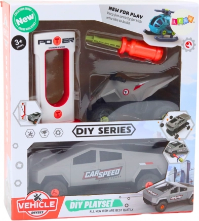 Kreativni komplet za male tehnike: siv sodoben avto, štirikolesnik in polnilna postaja za montažo. Otroci vadijo fino motoriko in razumejo osnove mehanike z vijačenjem in sestavljanjem. Priložen je izvijač. Igrača je izdelana iz kakovostnih materialov, ima certifikat CE in izpolnjuje standard EN71, primerna za otroke od 3 let.