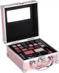 Elegantni rožnati kozmetični kovček v kompaktni izvedbi ponuja pregledno organizacijo in popolno opremo za ličenje oči, lic in ustnic. Aluminijasta izvedba s kovinskim zapiranjem je vzdržljiva in hkrati lahka, zato je idealna za torbico ali potovanja.