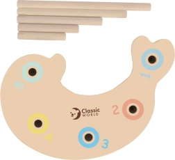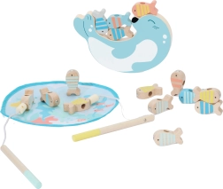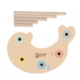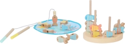Komplet vsebuje vse za takojšnjo igro – ribice, 2 palici, igralno podlogo »jezerce« in balančno figurico. Varno, trpežno in prijetno na dotik zahvaljujoč naravnemu lesu in gladki obdelavi.