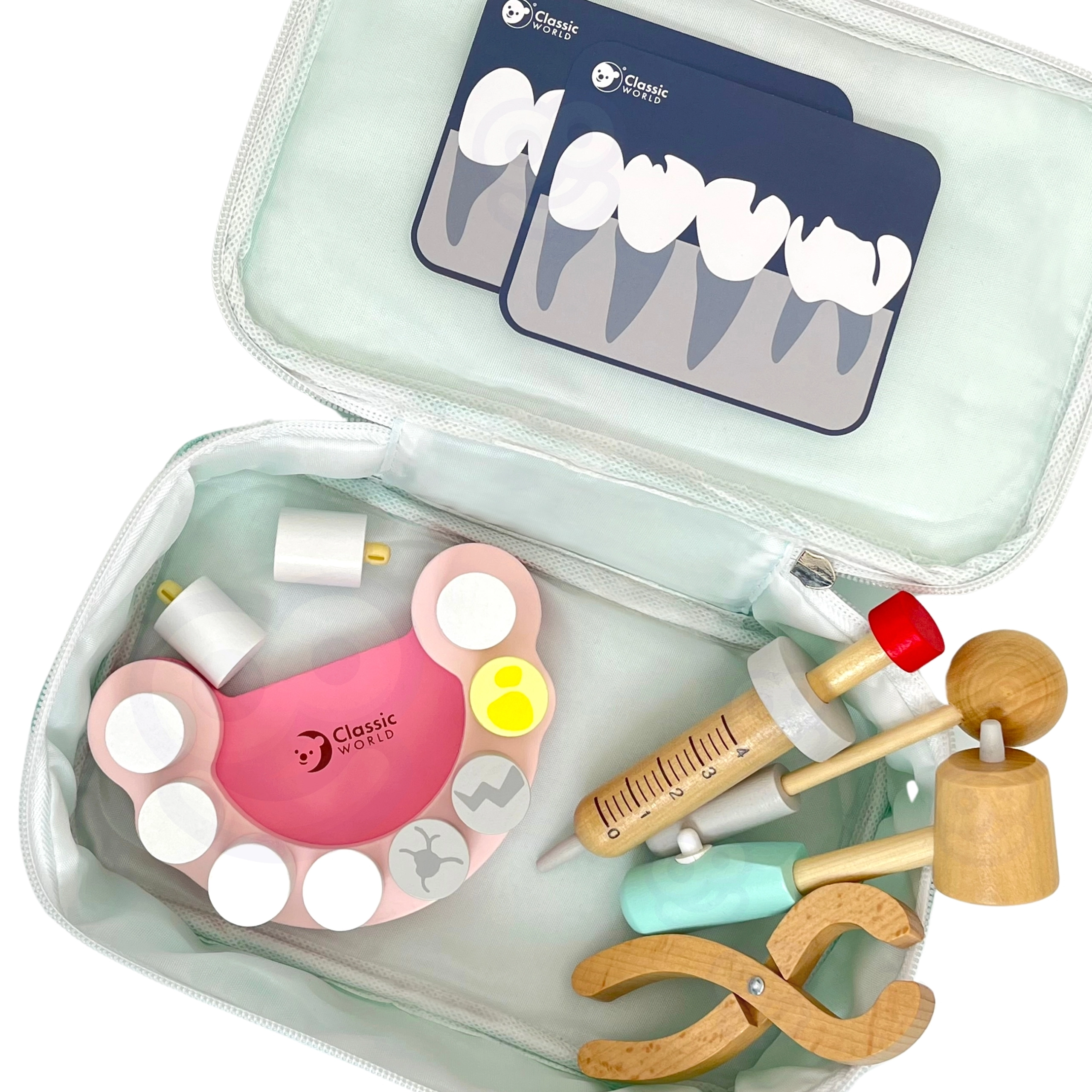 Classic World mali zobozdravnik – leseni komplet v kovčku, 18 delov
