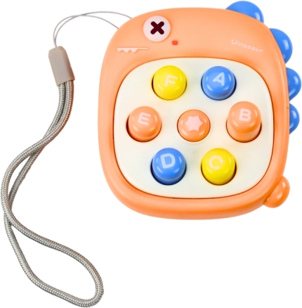 Pritegljiva igrača Whack a Mole izstopa s svojim veselim dizajnom oranžnega dinozavra in enostavnim upravljanjem. Namenjena je najmlajšim, ki s pomočjo igre izboljšujejo svojo pozornost, reflekse in koordinacijo gibov. Glavna naloga je čim hitreje pritiskati gumbe, ki se naključno pojavljajo na površini igrače.