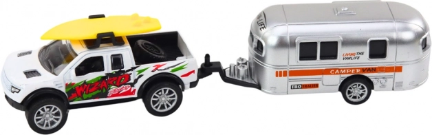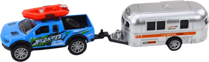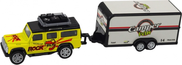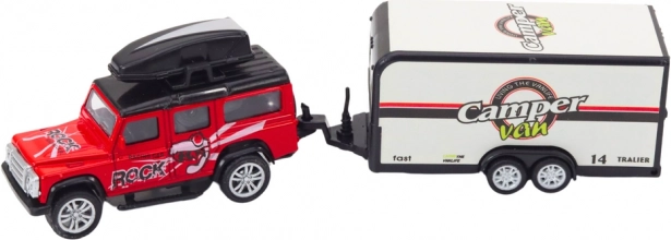 To terensko avtomobilček s karavanom je zasnovano tako, da podpira kreativno igro polno pustolovščin. Avtomobilček je opremljen z vztrajnostnim pogonom, kar pomeni, da se zlahka premika in nudi ure zabave, medtem ko karavan dodaja elemente domišljije.