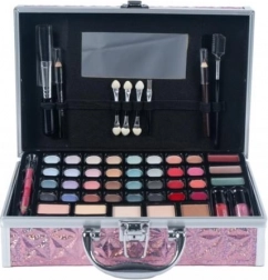 Stilni rožnati kozmetični kovček s popolno opremo za ličenje za vsakdanjo rabo in potovanja. Ponuja 24 senčil za oči, bleščila in glosse za ustnice, rdečila in pudre, praktične čopiče in aplikatorje ter vgrajeno ogledalce. Trdna izdelava in pregledni predelki poskrbijo, da boste imeli svojo kozmetiko vedno pri roki in popolno organizirano.