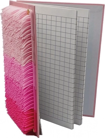 Stilski senzorični zvezek z ombre rožnatim dizajnom in nežnimi cofki na platnicah ponuja prijeten otipni občutek, format A5 in 80 listov v mreži na spiralu. Trde platnice s TPR površino ščitijo vsebino, spiralna vezava zagotavlja udobno obračanje, zvezek pa je dodatno pakiran v zaščitni prozorni škatli.