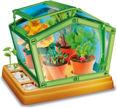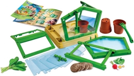 Ta izobraževalni komplet otrokom na preprost in zabaven način približa osnove botanike. Prozoren rastlinjak z nastavljivo streho pomaga uravnavati vlago in temperaturo, zato je odličen za prve poskuse gojenja doma.