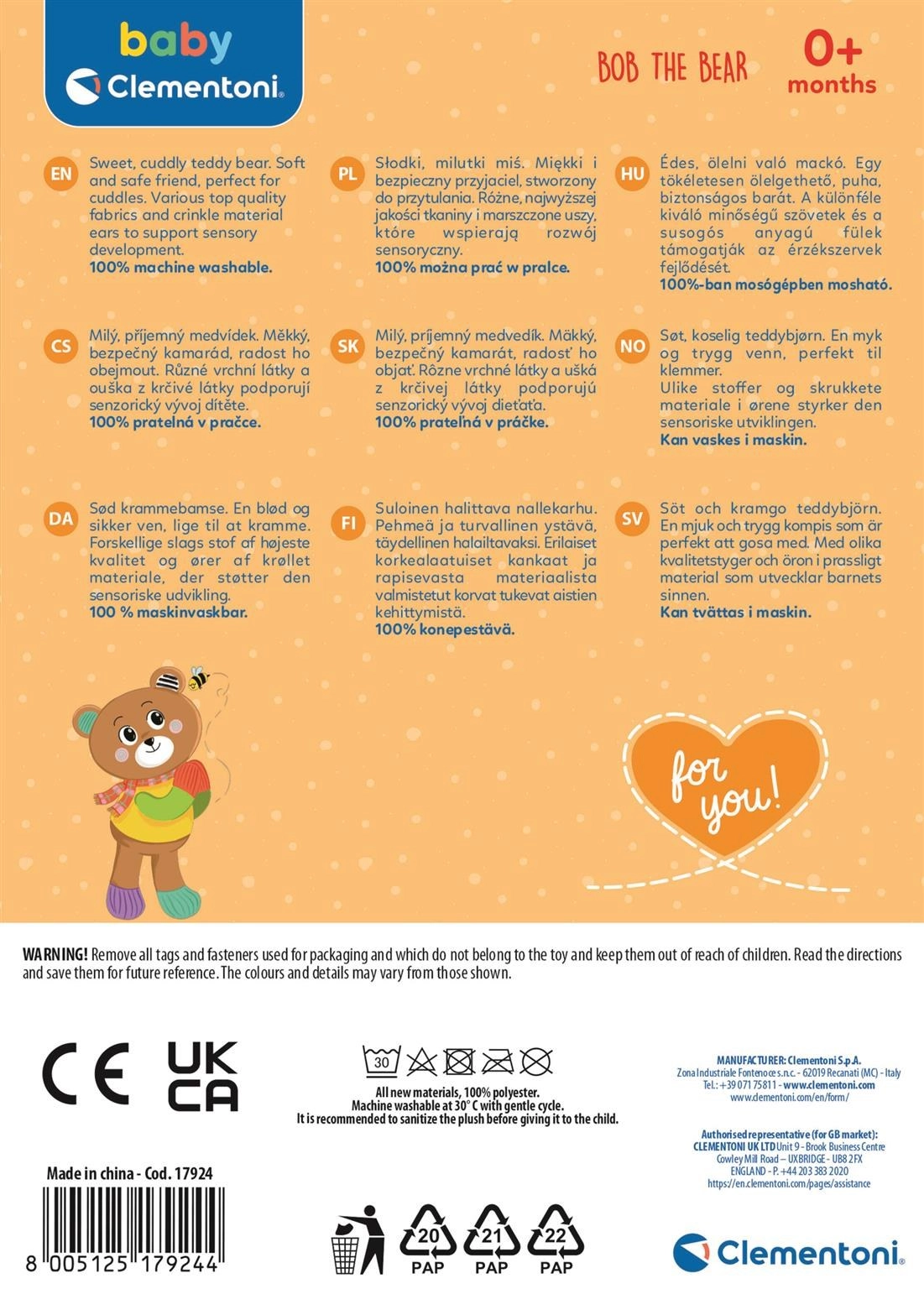 Plišasti prijatelj Medo je mehak in prijeten na dotik, kar ga naredi za popolnega sopotnika za vsakodnevno igro in crkljanje. Zahvaljujoč raznolikim materialom pomaga otrokom razvijati njihove senzorične sposobnosti: