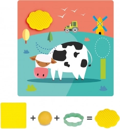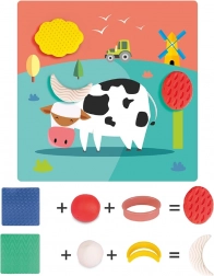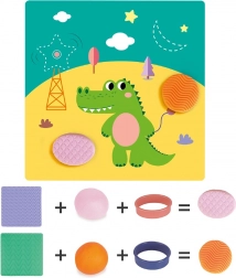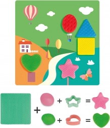 Barvite in teksturirane koščke spodbujajo otrokovo domišljijo.