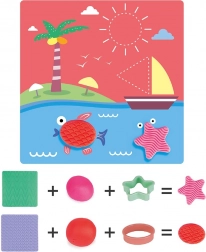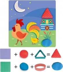 Edinstven komplet Igre s plastelinom – Geometrijske oblike omogoča otrokom, da se vživijo v vlogo malih umetnikov. Igrača je zasnovana tako, da spodbuja tipni čut in podpira prepoznavanje oblik ter tekstur.