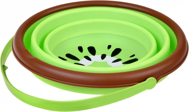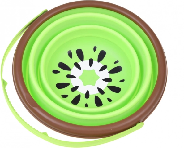 Ta zložljivi silikonski vedriček s sadnim motivom kivija je odličen spremljevalec za male raziskovalce. Razprete ga v hipu, po igri pa ga zložite v ploščato obliko, zato v torbi ali kovčku zavzame minimum prostora. Mehak, a vzdržljiv material je prijeten na dotik in nežen do otroških rok.