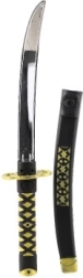 Ta stilska katana s črnim in rumenim ročajem je zasnovana za zabavno in varno igro, idealna za male bojevnike.