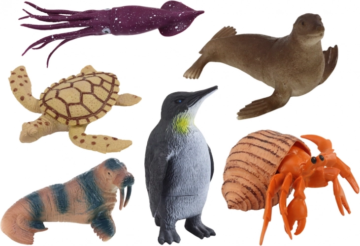 Živali v kompletu predstavljajo različne vrste, od morskih sesalcev do rakov, kar omogoča ustvarjanje bogatih in raznolikih prizorov podvodnega sveta. Zaradi takšne raznolikosti se lahko otroci učijo o različnih ekosistemih in vedenju živali, razvijajo svojo domišljijo ter širijo znanje o naravi. Figurice so izdelane iz visoko kakovostnih materialov, kar zagotavlja njihovo trpežnost in varnost pri igri.