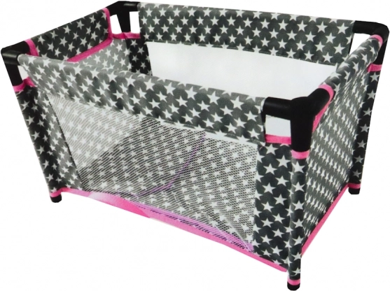 Stilska otroška posteljica za punčke v kombinaciji sive, bele in rožnate barve z vzorcem zvezdic je popoln dodatek za otroško sobico. Stabilen okvir iz aluminijastih cevi s plastičnimi spojkami ter mrežaste stranice zagotavljajo varno in realistično igro. Priložena je mehka posteljnina za večje udobje punčke.
