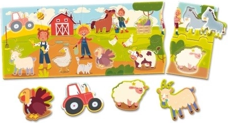 Sestavljanka za najmlajše, zasnovana za razvoj osnovnih veščin otrok, starih 1–4 leta. Sestavljena slika kmetije prinaša veselje in zabavo.