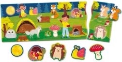 Sestavljanka vsebuje pisane podobe gozda, ki navdihujejo in spodbujajo otroško domišljijo.
