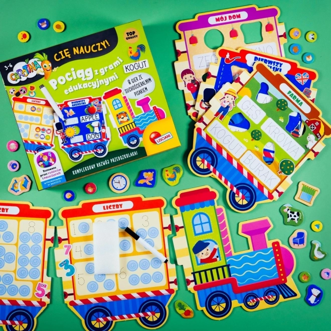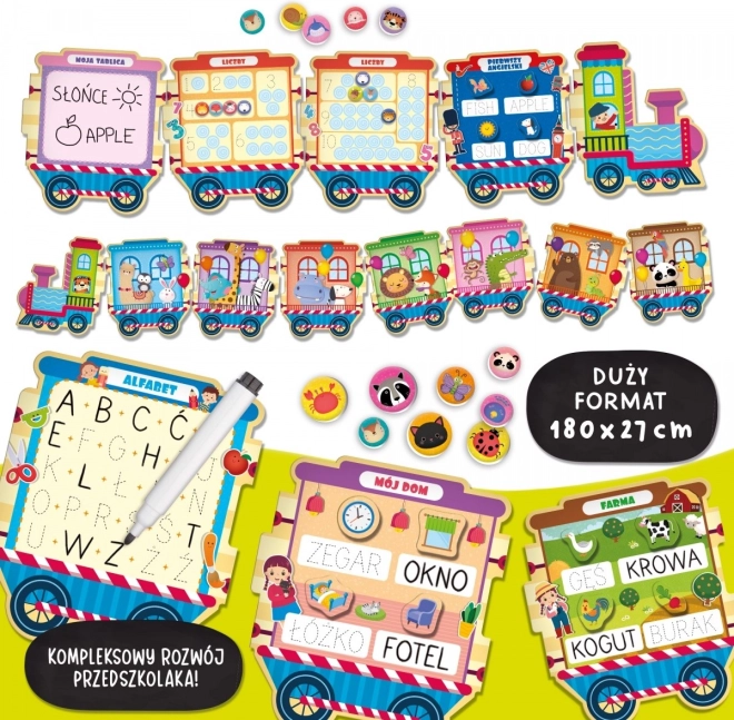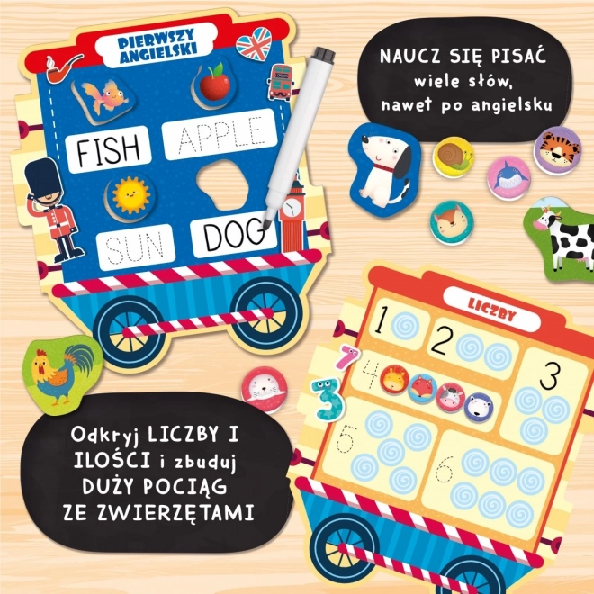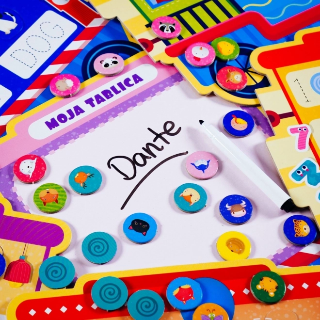 Zabaven vlakec z obilico izobraževalnih dejavnosti! Vsak vagon ponuja drugo igro. Otroci lahko odkrivajo abecedo, številke, prve angleške besede in še veliko več!
