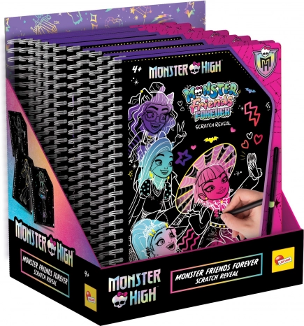 Odkrijte čarobni svet MONSTER HIGH s praskalnim skicirjem, ki po odstranitvi črne plasti razkrije zlate, bleščeče in mavrične učinke. Odličen za ustvarjalno zabavo doma in na poti – skicir vsebuje 44 strani polnih domišljije.