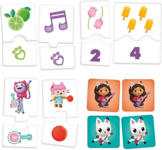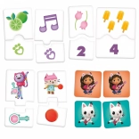 Tematske plošče in ilustracije iz Gabinine čarobne hišice spodbujajo otroke k odkrivanju števil, predmetov in preprostih pravil med igro.