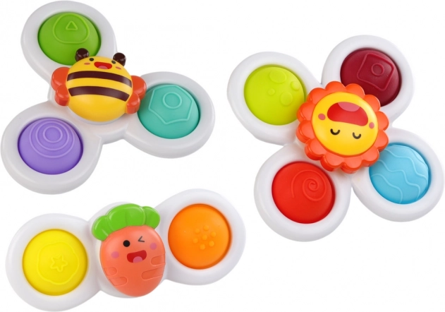 A to še ni vse! Vrtiljaki imajo ležaje, ki zagotavljajo dolgotrajno vrtenje, pritegnejo otrokovo pozornost in spodbujajo interakcijo. Barviti gumijasti potisni elementi dodatno nudijo senzorično stimulacijo in delujejo kot sredstvo proti stresu.