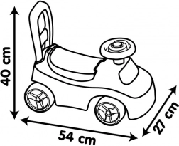 Varnost zagotavljajo proti-prevrnitveni izrastki proti prevrnitvi naprej in nazaj, stabilna nedrseča kolesca ter čvrsta konstrukcija iz kakovostne plastike. Otroci bodo vzljubili pravi volan s hupo, starši pa bodo cenili enostavno uporabo in vzdrževanje.