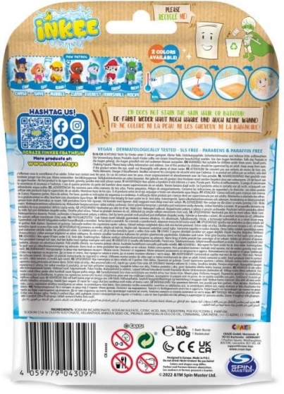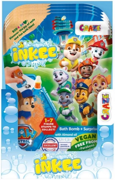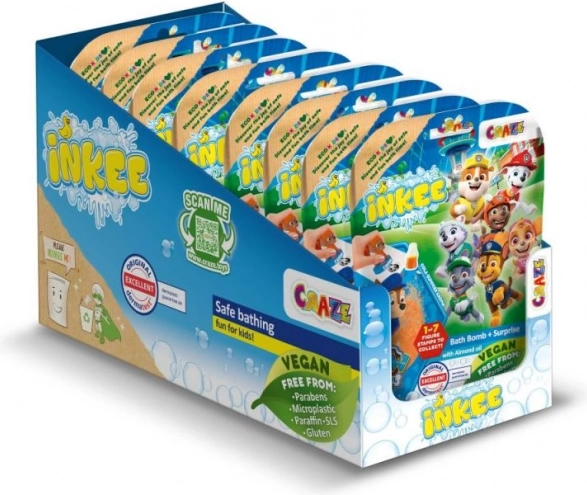 Šumeča kopalna bomba Inkee z licenco Paw Patrol prinaša v kad barvito doživetje in sladko dišavo Cola Gummies. V notranjosti se skriva presenečenje, ki bo navdušilo otroke – žig z enim izmed priljubljenih junakov. Vsaka krogla tehta 80 g in je zapakirana v ekološki embalaži.