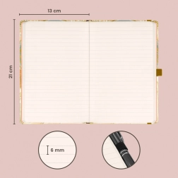 V notranjosti najdete 172 strani kakovostnega rumenega papirja, idealnega za vsakodnevno pisanje. Zvezek je odličen kot dnevnik, za delovne zapiske, načrtovanje in kreativne ideje. Notranji žep sprejme drobnarije, vizitke ali nalepke.